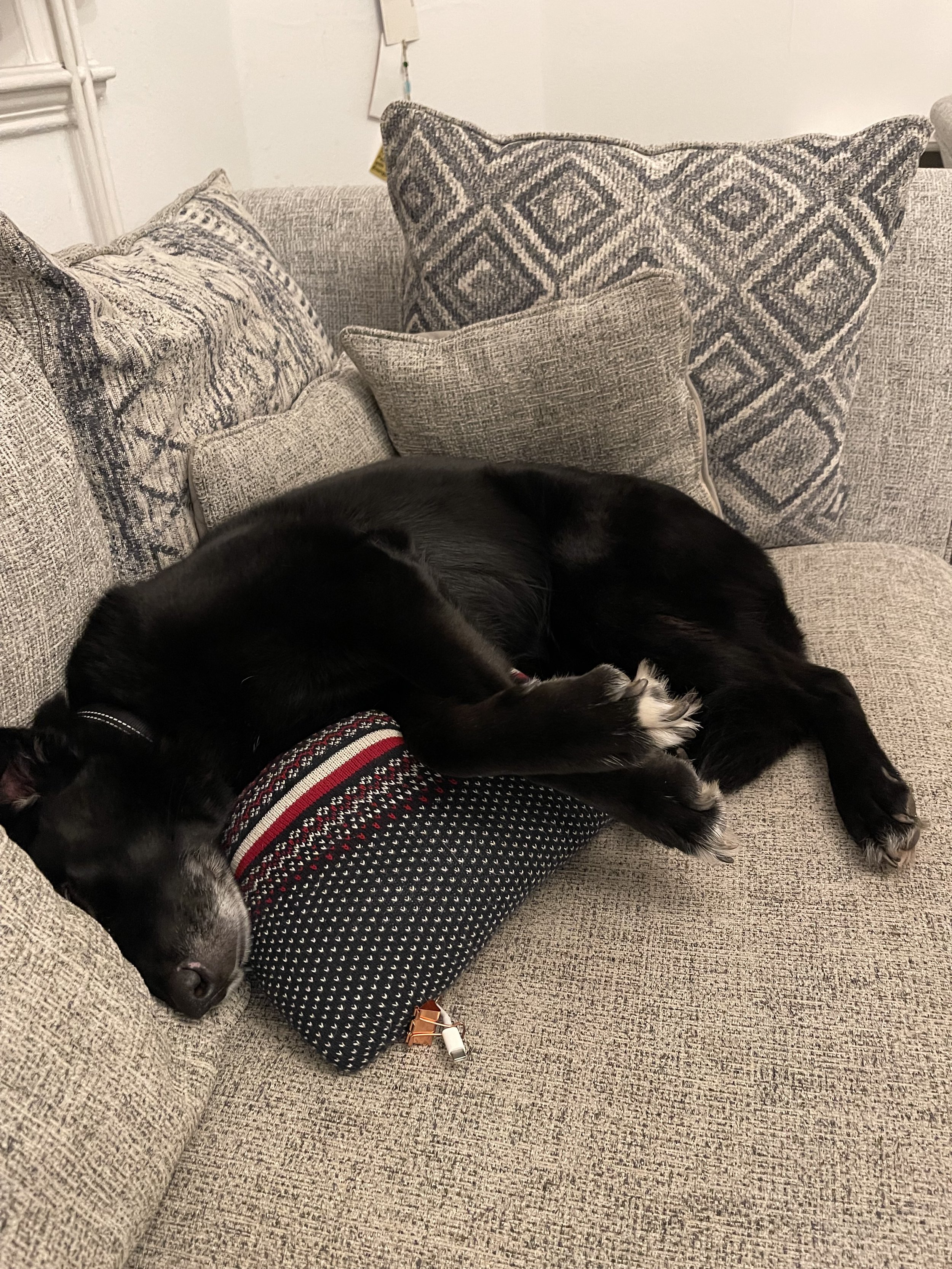 These are my two dogs, Buster and Rosie, doing what they do best: Lie on the sofa in really strange positions that I can’t imagine how they’re comfortable…but i’ll not yuck their yum! If this works for them, i’m all for it!